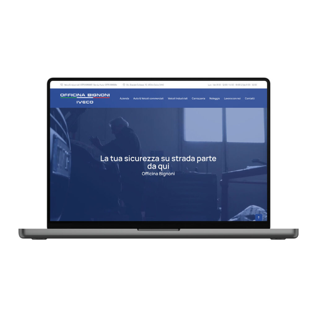 Officina Bignoni è una realtà storica specializzata nella manutenzione e riparazione di auto e veicoli industriali, con un'offerta che comprende anche un reparto revisioni e un’area dedicata alla serigrafia per camion. L’azienda aveva bisogno di un sito web chiaro, moderno e funzionale che rappresentasse tutte le divisioni in modo ordinato, migliorando la comunicazione online e facilitando il contatto da parte dei clienti.